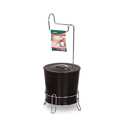 Esta Lixeira Preta Com Suporte Papel Higiênico é ideal para organizar seu banheiro evitando furos na parede para pendurar o rolo de papel higiênico, além de vir junto da lixeira.